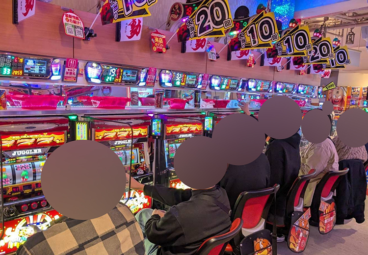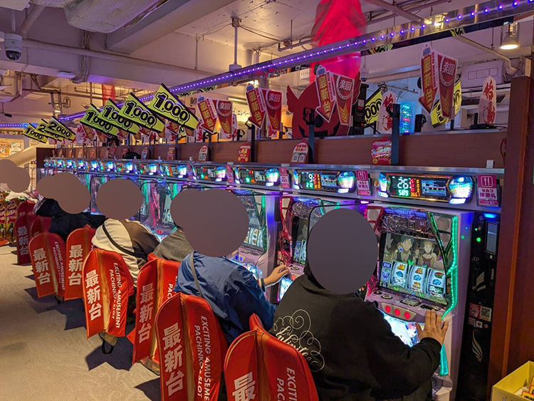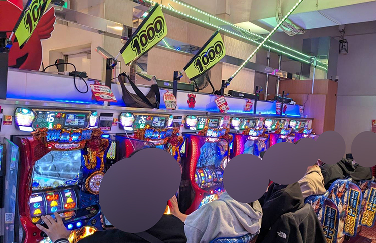 そして、ジャグラーコーナーはこの辺りから明らかにアイムの稼動がよくなり、退店するまで稼働は落ちずでした。最後に店内チェックをした時は星矢の稼働が上がっていました。お話を聞くとレア小役の確率が良いとの事で埋まりはじめていたようです。そして、シンフォギアは朝から満台。ちょうどみなさん休憩に出られていてお話は聞けませんでしたが、出玉もついてきていたし立ち回りが上手い方が多い中ずっと稼働していたのは何か光るものがあったのでは? と思っています。そして、北斗コーナーもしっかりお客様がいらっしゃいました! 特に〇〇pt獲得の札が多く刺さっているところがあったのでしっかり闘神もあったようです◎※数値はじゃんじゃん編集部が独自に調査したものです。その他の取材結果