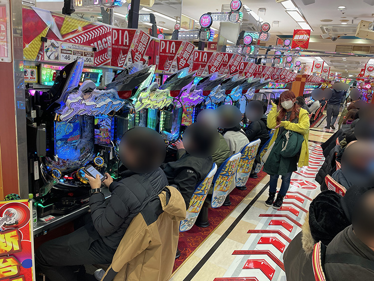 朝イチで埋まったのはエヴァコーナーと北斗無双4でした。北斗無双4は新台なので一概に言えないですが、エヴァは台数が多いのにしっかりお客さんがついているのが印象的でした。