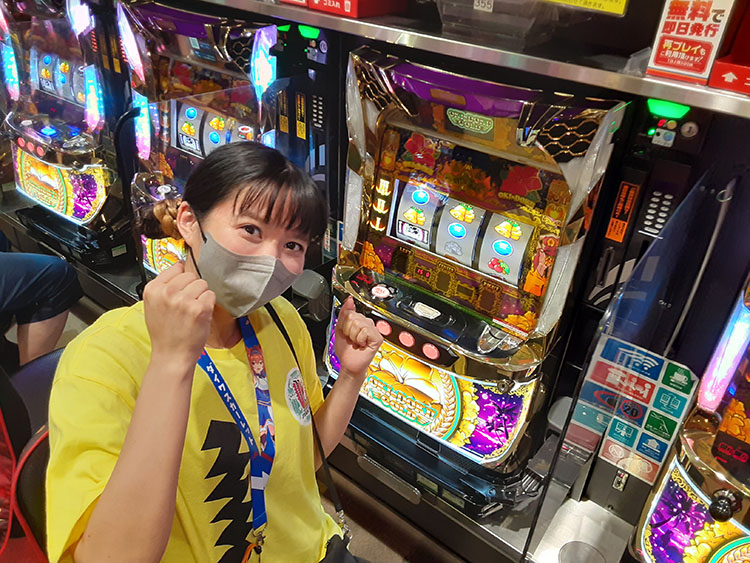 【天使降臨】『ヴヴヴ』、『新鬼武者2』、『カバネリ』は全体的に絶好調! さらに『沖ドキ!GOLD』にもご機嫌な台が多数存在し、音”華花”も上機嫌だった!