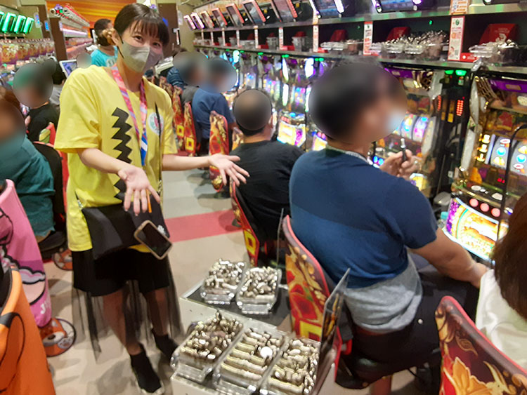 店外ののぼりって言うのかな?それに「沖ドキいっぱい入ってます!」の文字に惹かれ、沖ドキ座ろって思って抽選受けたら3番。