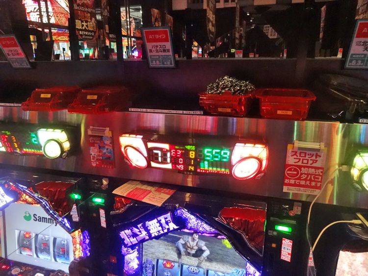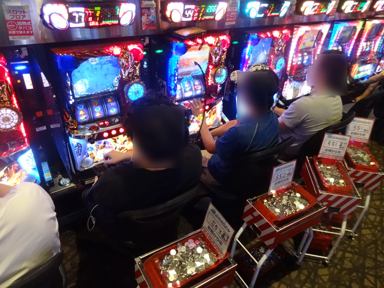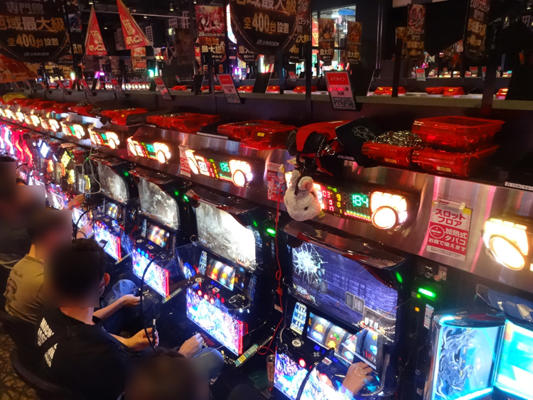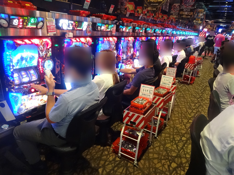 そして北斗系に負けず劣らず賑わっていたのが『パチスロ聖闘士星矢 海皇覚醒』。別積みが連なって発生した光景は圧巻! 仕掛けがないとお目に掛かれないような光景でしたね。