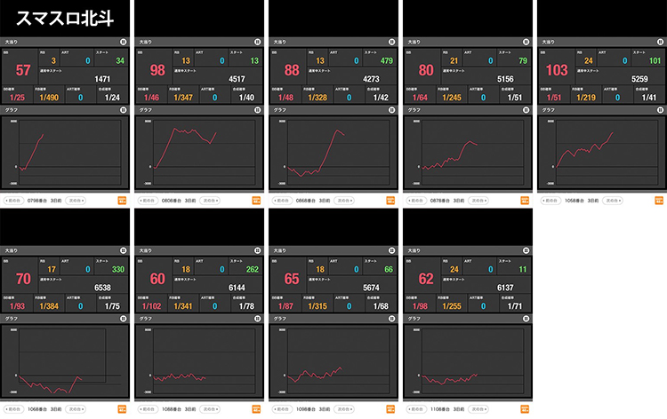 ところが実は前述した狙いはハズレ。今のところ毎回マルハンメガシティ柏さんに存在している“高設定を探す楽しみ”。今回はなんと、取材日が9月8日だったからか“末尾8と9がハーフで高設定”的な感じでした。