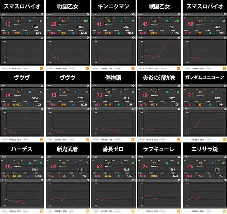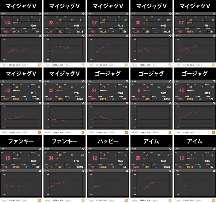 早速末尾8と末尾9のグラフを全台ピックアップ●末尾8全台グラフ