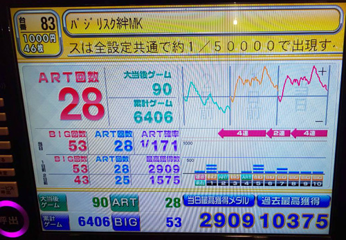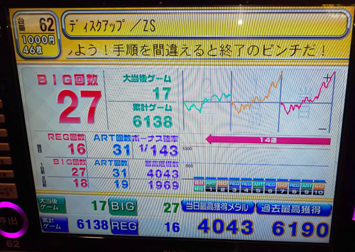 2019/10/25(金)【スロマガ突撃回胴取材】ディスクアップ、ハーデス、新台猪木が大大大人気! その他綺麗な右上がりのグラフを描く機種多数!