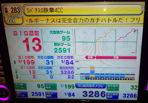 プラス台数:2台(全4台)アントニオ猪木という名のパチスロ機合計差枚 :約-1,965枚