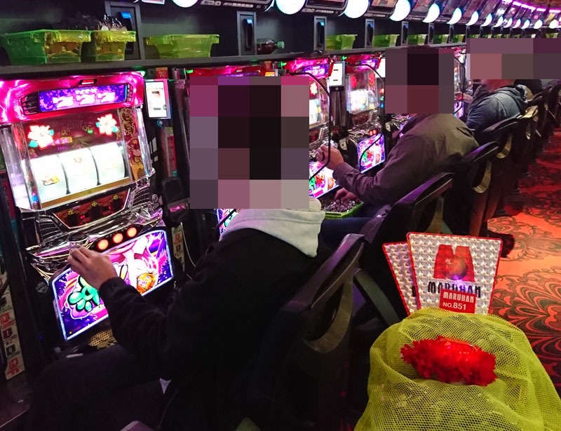 取材を始めてまず目に飛び込んできたのは『ジャグラー』コーナー! 中でも『マイジャグ』は3・4ともに好調で1000ptオーバー台が随所に見られる状況! 合算確率も全体的に良くまだまだ伸びる台があるだろうなと感じさせられました!また最終的に大台突破となった『凱旋』の他、『ビンゴプレミアム』や『マジハロ6』『沖ドキ!』などで1箱以上の箱使用台を複数確認! ランキングにも入っている『ギルティクラウン』は取材時点ですでに別積みとなっており、最終的に4000ptオーバーという好結果となりました。