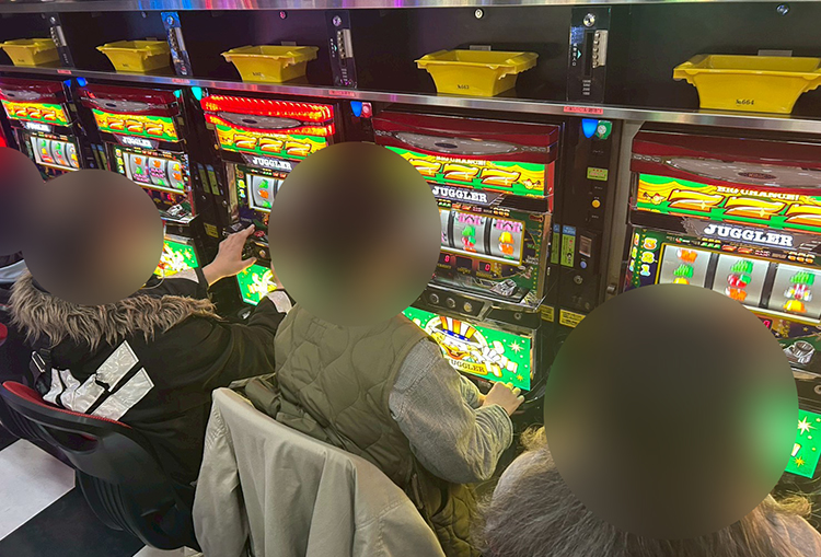 並び人数 40人 ピックアップ機種合計pt数 +27,860pt 1台あたりの平均pt数 +1,548pt 3台並びで好調なポイントを確認!!