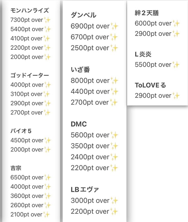 順位 機種名(台番号) pt数 1 L東京喰種CT(1281) 13,308pt 2 L聖闘士星矢海皇覚醒ED(1256) 10,826pt 3 L炎炎ノ消防隊jG(720) 9,666pt 4 Lダンベル何キロ持てる?X(776) 8,070pt 5 L/いざ番長/SB8(1031) 7,607pt