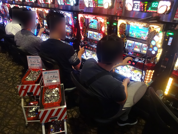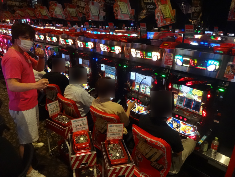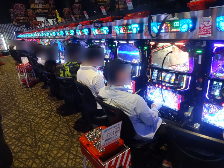 『押忍!番長3』は手前の初期パネル(441番台〜445番台)が鬼アツ状態。お馴染みの光景でしたが、何度見てもいいですね。他のパネルは?と思いましたが、ガッツリ塊…って感じはないですが、好調な台があったので、チャンスはありそうでしたね。