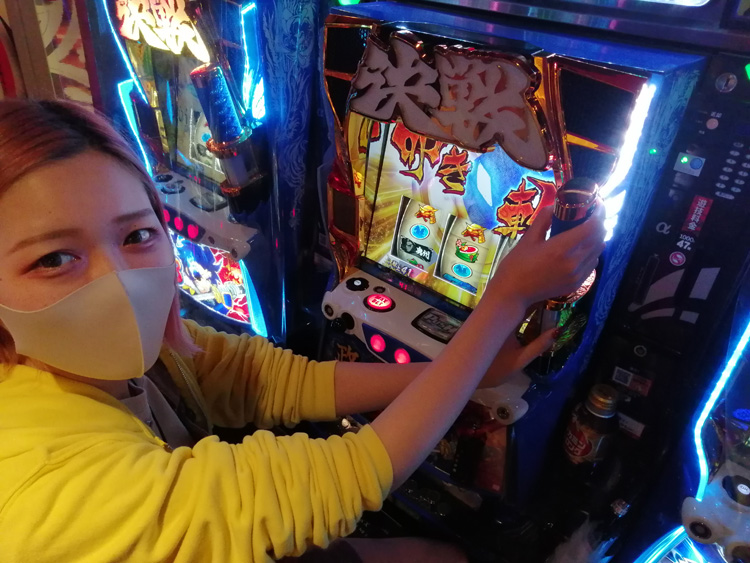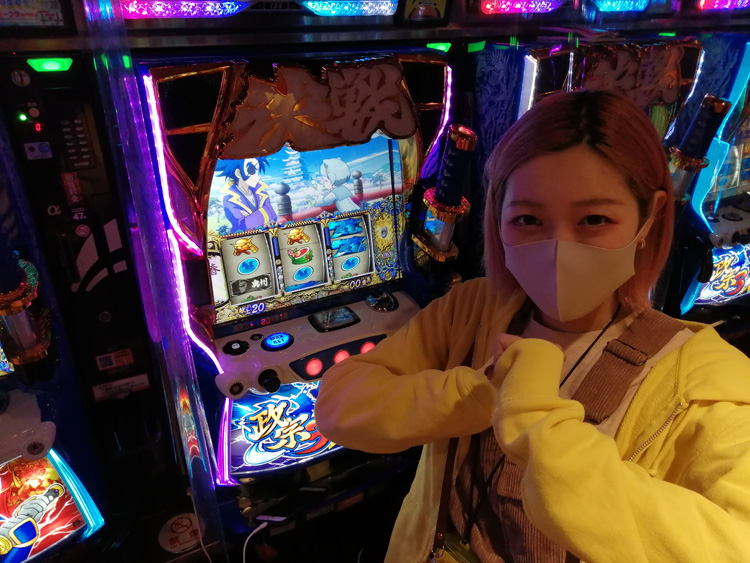 先月ぺこねぇちゃんが取材した時に好調だったそうなので、今回はさらなる絶好調に期待して実戦していきたいと思います。そんな希望を持って確保した台は『政宗3』! 初打ちなので勉強しながら打っていきたいと思いまーす!!