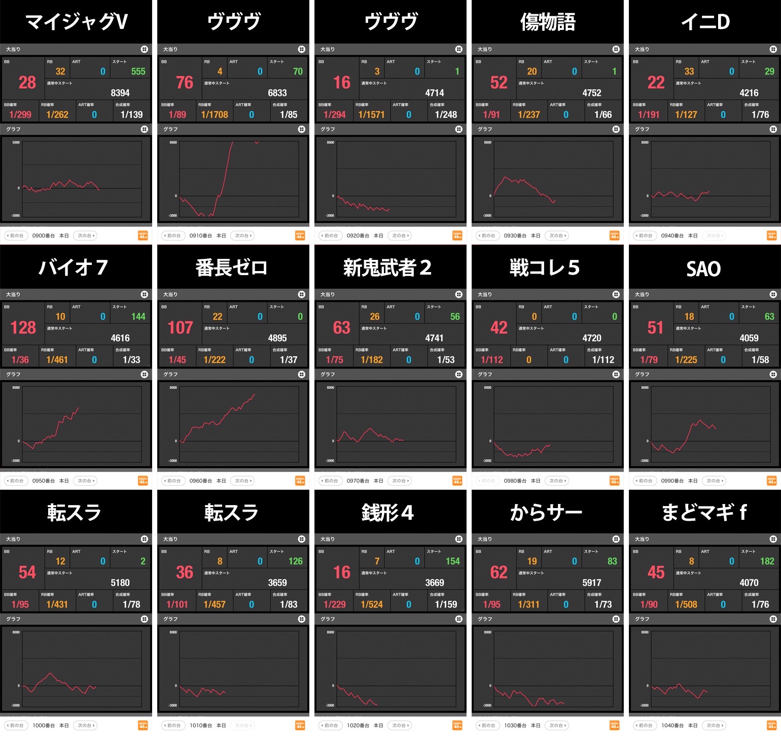 グラフ的にはこのような感じ。非常に安定した右上がりでしたが設定的には正直微妙かなと。何故なら前述したエウレカが全台系でも無かったし、特定末尾にも当てはまっていなかったから。