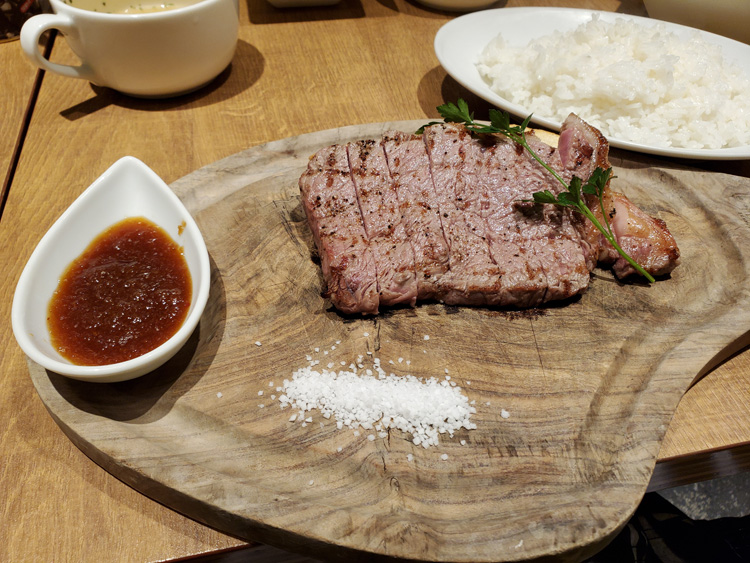 お昼ご飯は大好きなお肉!! 私が頼んだのは「サーロインステーキ定食」。おろしダレと岩塩につけて食べるのですが、岩塩につけて食べるのが特に美味しかったです☆ 次回はローストビーフ丼が気になるのでそれを食べる予定です!!