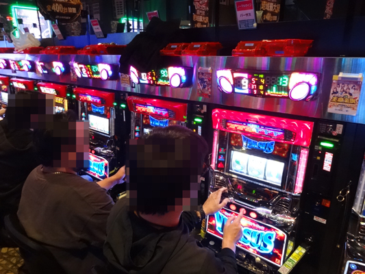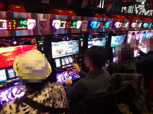 当日はお昼12時頃に突撃!! 店内に入ってまず印象的だったのが、とても混み合っていて、空き台を探すのが大変な状況だったこと。『ミリオンゴッド-神々の凱旋-』、『アナザーゴッドハーデス-奪われたZEUSver.-』、『押忍!番長3』など設置台数がかなり多いところも全く空き台がありません。どうやら朝イチの時点で、かなりのお客さんがいたみたい。